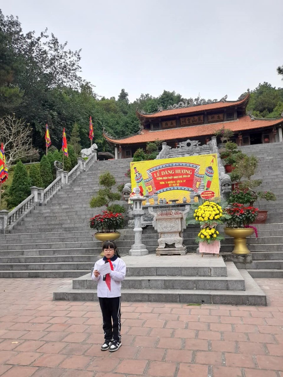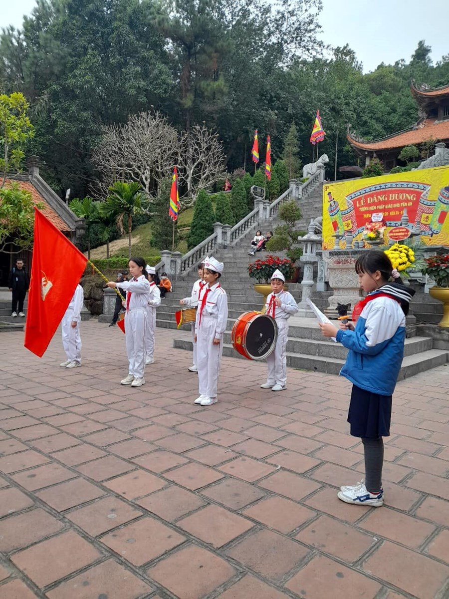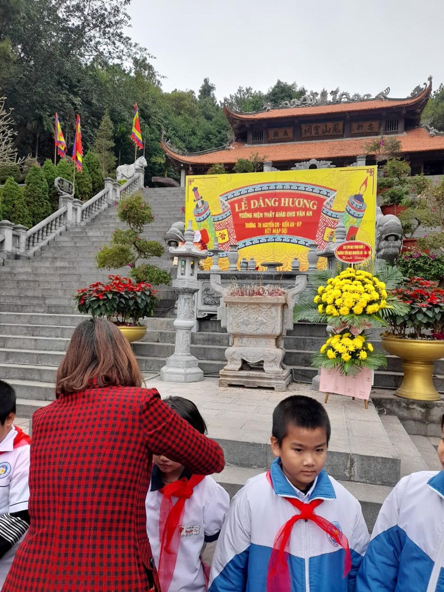 Để góp phần làm cho Đội lớn mạnh hơn nữa, ngày 31/12/2022 Liên đội Trường TH Nguyễn Du đã tổ chức Lễ kết nạp đội viên và công nhận chi đội mới tại Đền thờ Thầy giáo Chu Văn An tọa lạc trên núi Phượng Hoàng. Cùng ngày các em học sình khối 3 đến thăm và tìm hiểu địa chỉ đỏ tại Đền Tràng Kênh nơi thờ của 3 vị anh hùng có công dựng nước và giữ nước: Đức Vương Ngô Quyền, Hưng Đạo Vương Trần Quốc Tuấn và vua Lê Đại Hành.