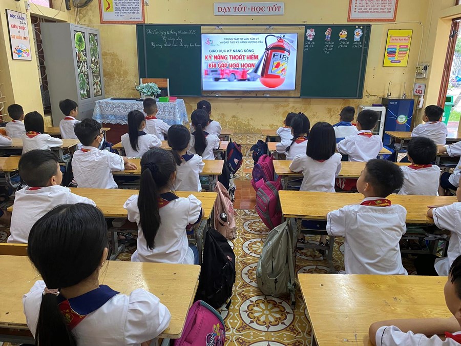 Để giúp học sinh có các kiến thức và kĩ năng về phòng chống cháy nổ Trường TH nguyễn Du đã phối hợp cùng Trung tâm kĩ năng sống Hương Vân cho học sinh tìm hiểu và thực hành 1 số kĩ năng và xử lí tình huống thường xảy ra khi có hiện tượng cháy nổ.