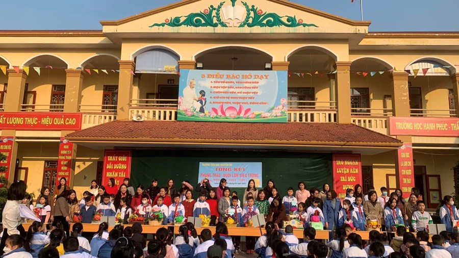 Nhân dịp này, nhà trường đã dành tặng nhiều phần quà nhỏ tuyên dương các cá nhân và tập thể tích cực nuôi lợn siêu trọng và cũng dành tặng 32 xuất quà cho các bạn học sinh có hoàn cảnh khó khăn trong nhà trường.